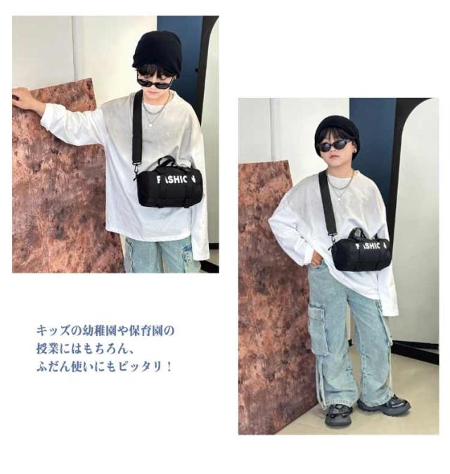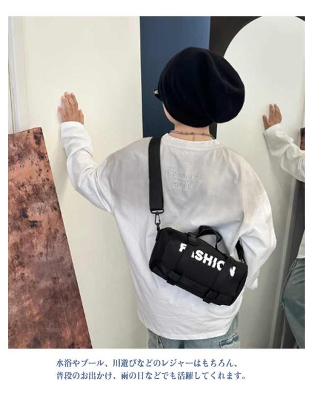 2WAY ロールボストン キッズ 子供用 ファスナー 小学生 手提げバッグ 斜め掛け ミニボストンバッグ ショルダーバッグ ジム 授業 水泳 海 川 レジャー