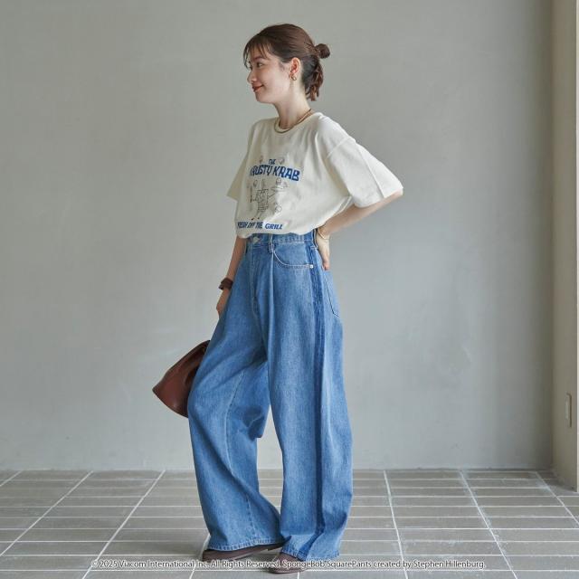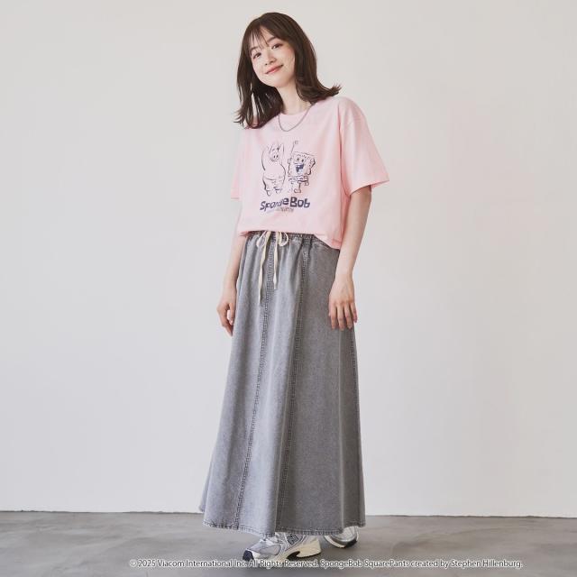 ・柔らかいタッチで描かれたスポンジ・ボブのプリントがコーディネートのアクセントに