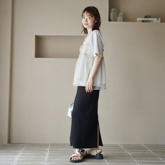 大人らしい上品さを引き立てるシンプルなナロースカート。
