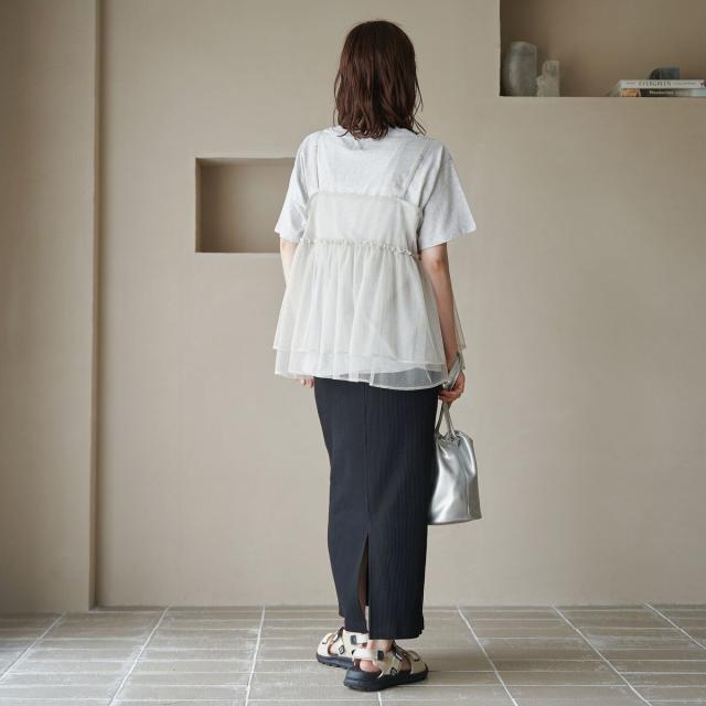 柔らかく伸縮性のある細リブニット素材は肌当たりも優しく、デイリー使いにも最適です。