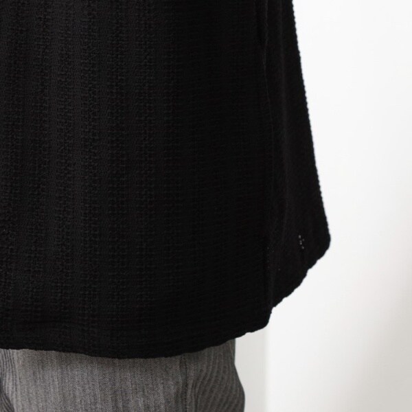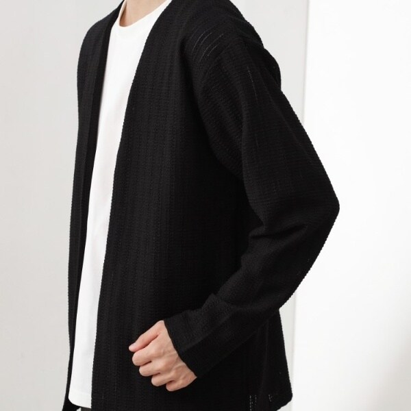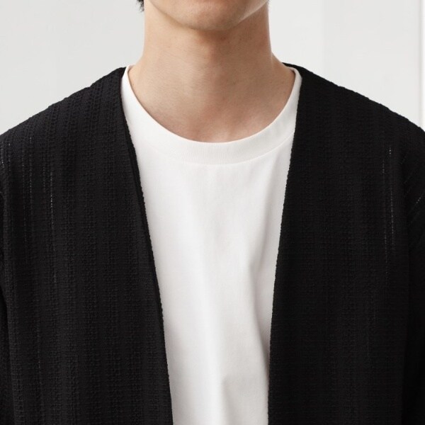 ジャカード素材を使用し立体的な表面感とふっくらとした肌触りが特徴のカーディガンと吸水速乾機能が付いた半袖Tシャツのセットアイテム。