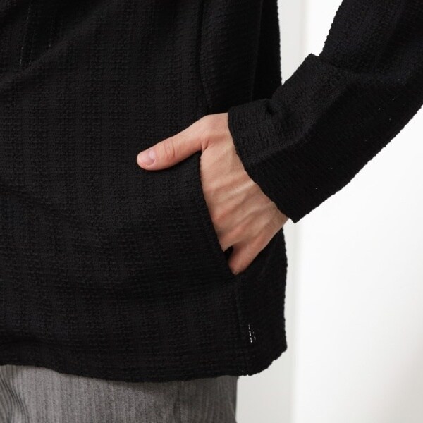 カーディガンには、肌触りが柔らかく着心地の良いジャカード素材を採用。