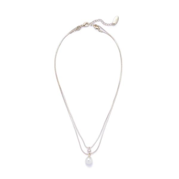 2連のチェーンそれぞれにパール調パーツとストーンをあしらった定番のプチネックレス。主張しすぎないシンプルデザインでオフィスシーンにもおすすめです。取り外し可能なため、それぞれ単品としても活躍します。※モデルの着用画像の場合、光の当たり具合により、実際の色味と異なって見えることがございます。色味は、商品単体の画像をご参照ください。