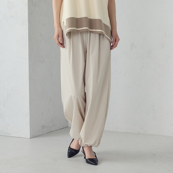 ウエストのタックとギャザーによるたっぷりとした分量感と、