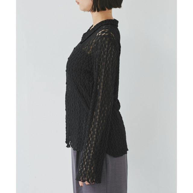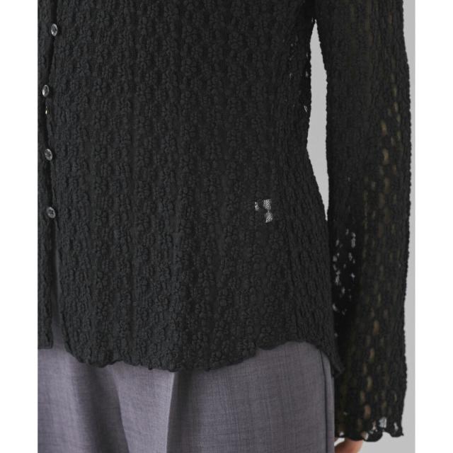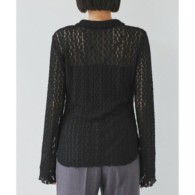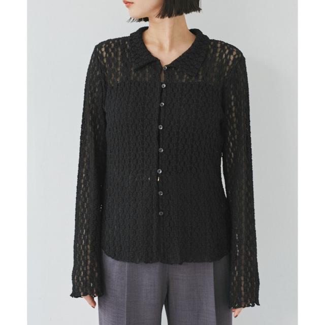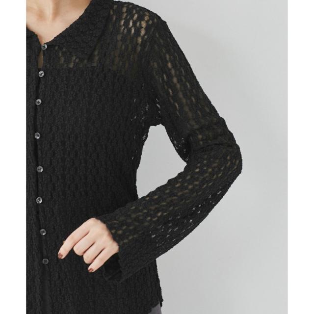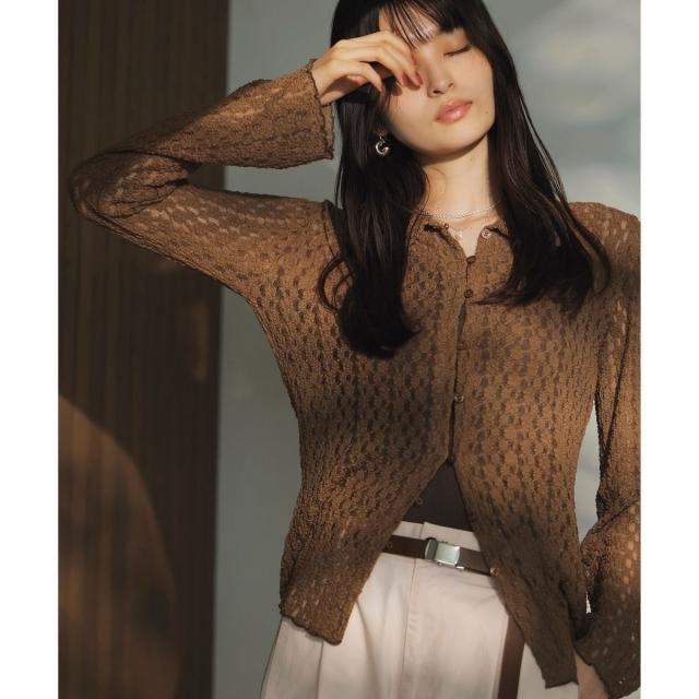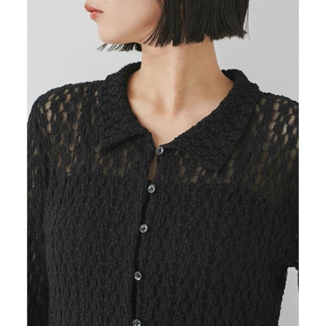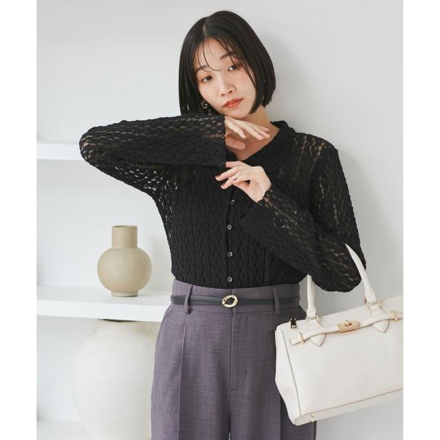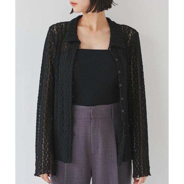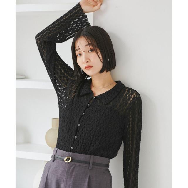 ウエストや袖でシェイプしているのでフォルムにメリハリがあるアイテムです。形はシャツ型ですがレースカットソーなのでよりフェミニンな印象に。気温調節にもピッタリです!