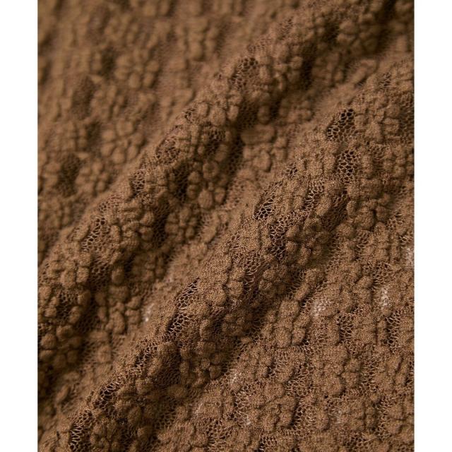 レースカットソー素材。レースは小花柄で主張が激しすぎないので普段使いにピッタリです!程よい伸縮性と柔らかさで肌に当たってもストレスなくご着用いただけます。