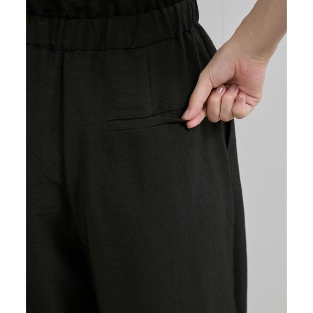 ダブル釦でスタイリッシュな雰囲気が素敵なオールインワン、かっちりしすぎないようにウエストをゴムにし柔らかい素材を使うことでオンオフどちらでも使えるデザインにしました。