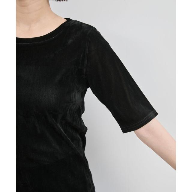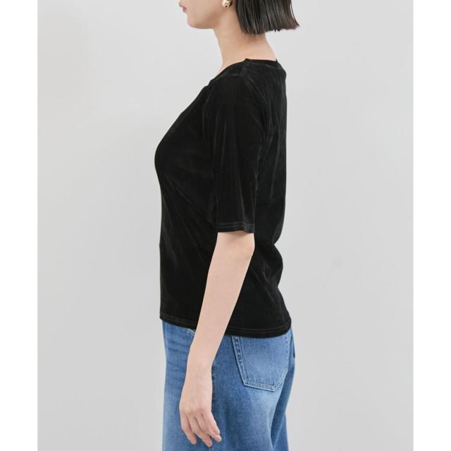 Tシャツよりも手軽にスタイリングをブラッシュアップできるベロアTシャツ。