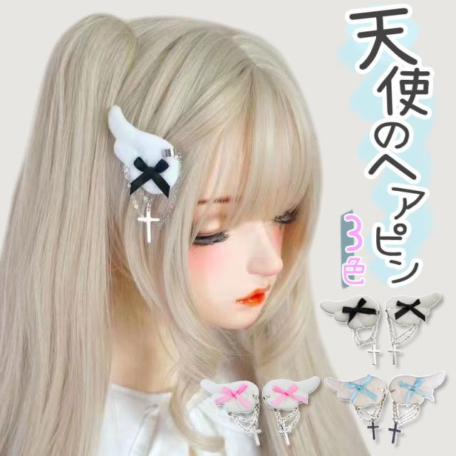 送料無料 天使 ヘアピン 羽 翼 ヘアクリップ ヘアピン バレッタ リボン クロス チェーン 地雷系 量産型 ゆめかわ 天使界隈 原宿系 可愛い 十字架