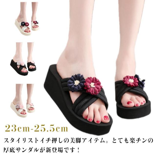 ビーチサンダル 厚底 ミュール ミュール レディース ウエッジサンダル 美脚サンダル 花柄 ミュールサンダル 靴 厚底サンダル 厚底 クロスベルト ビーサン フラワーデザイン コンフォート 軽量 リゾート 旅行 浴衣 シューズ