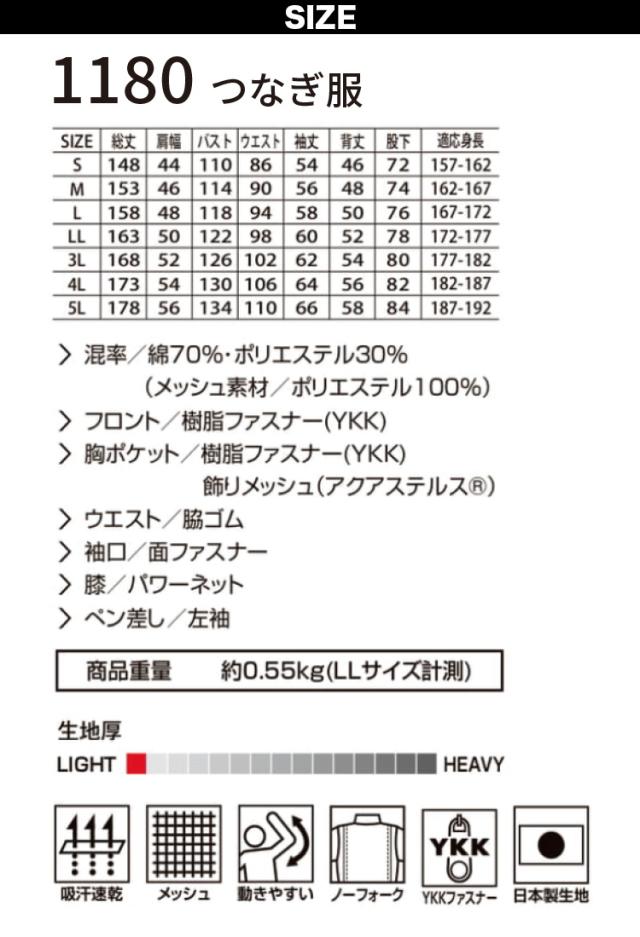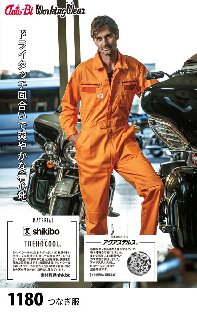Auto-Bi 高機能つなぎ服 1180 ツナギ 3L 4L 5L 生地薄 吸汗速乾 日本製生地 膝ネット メッシュ ノーフォーク YKKファスナー ドライタッチ 放熱性に優れた涼感素材 春夏つなぎ メンズ レディース 自動車工場