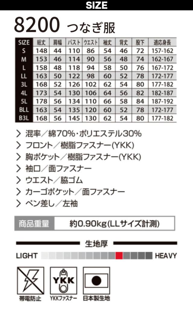 Auto-Bi 高機能秋冬長袖つなぎ服 8200 3L 4L 5L BLL B3L ツナギ 日本製生地 帯電防止 吸汗速乾 動きやすい YKKファスナー 通年 秋冬ツナギ 生地厚 メンズ レディース 自動車整備工場 牧場 工場