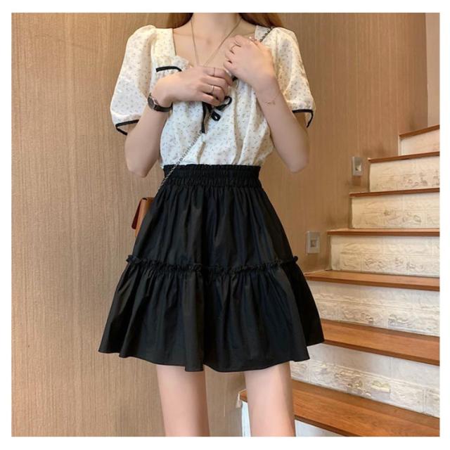 ミニスカート 無地 ティーン 春 ミニ ミニスカート ウエストゴム ミニ丈 フレアスカート ひざ上 ミニスカ インナー付き ショート丈 かわいい ティアード ミニスカ フェミニン