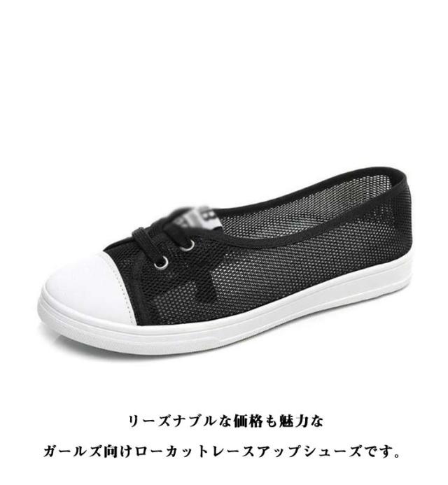 | 【ローカットスニーカー】 【キャンバス・メッシュ 2タイプ】 柔らかソールで返りがよく、歩きやすい! どんな服にも合わせやすい、色々なスタイルが楽しめる、定番で使える。♪ リーズナブルな価格も魅力なガールズ向けローカットレースアップシューズです。 つまさきの形が丸いから、足に優しい履き心地で、長時間歩いても痛くなりにくい&疲れにくい。 ちょっとした外出にも◎ 軽くてしなやかだから疲れにくいのもポイントです。 | |