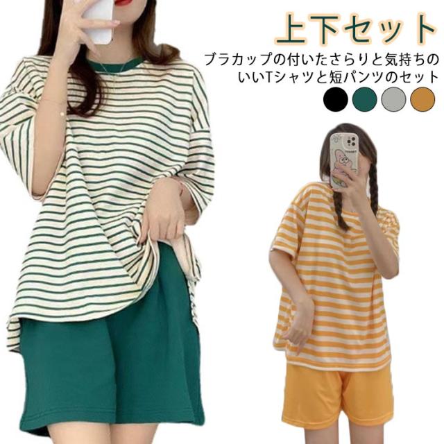 大きいサイズ かわいい カップ付き 半袖 ルームウェア 大人用 パッド付き 上下セット 半袖パジャマ 入院 夏用パジャマ 可愛いパジャマ 春 レディース 部屋着 丸首 パジャマ 夏 カップ付き 産後 ストラップ ボーター かぶるだけ ゆったり 部屋着 母の日