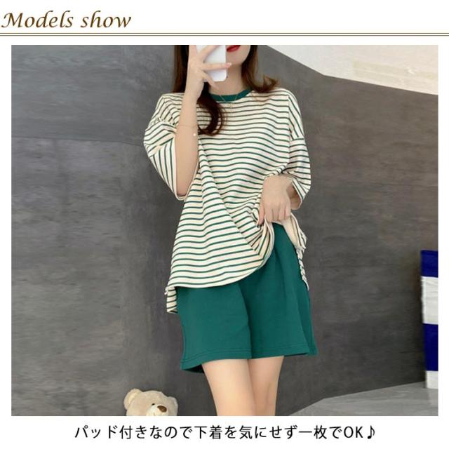 | ブラカップの付いたさらりと気持ちのいいTシャツと短パンツのセット パッド付きなので下着を気にせず一枚でOK♪ 吸湿性と通気性に優れ、汗をかいてもサラッとしていて快適 ゆったりサイズに仕上げ、長時間履いても締め付け感ゼロ! | |