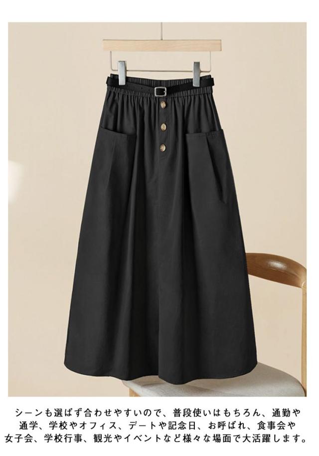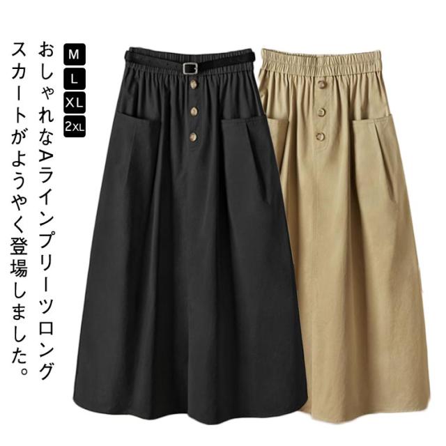 スカート ポケット付き 無地 膝下丈スカート Aラインスカート スカート ウエストスカート フレアスカート 薄手 体型カバー 春夏 普段着 シンプル きれいめ 可愛い 春 夏 ゆったり レディース 通勤 通学 リラックスウエア