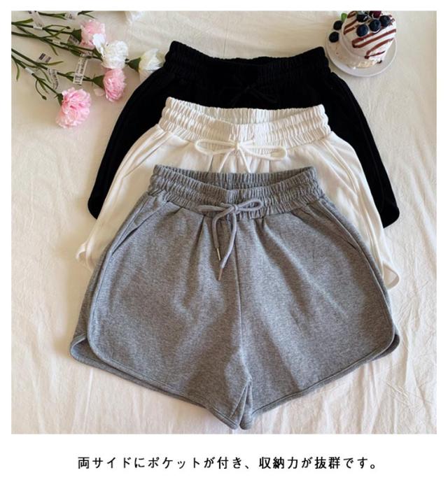レディース 短パン レディース ハーフパンツ ポケット付き 3分丈 短パン ウエスト紐 シンプル カジュアル 美ライン 短パン ルームウェア 部屋着