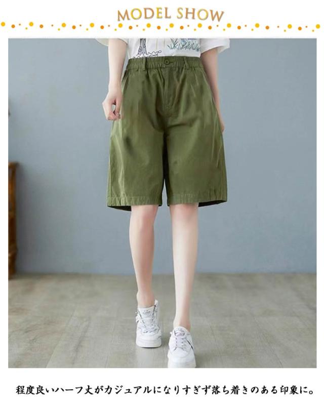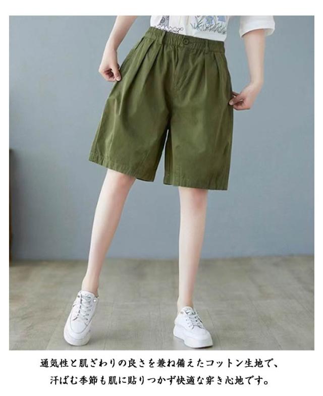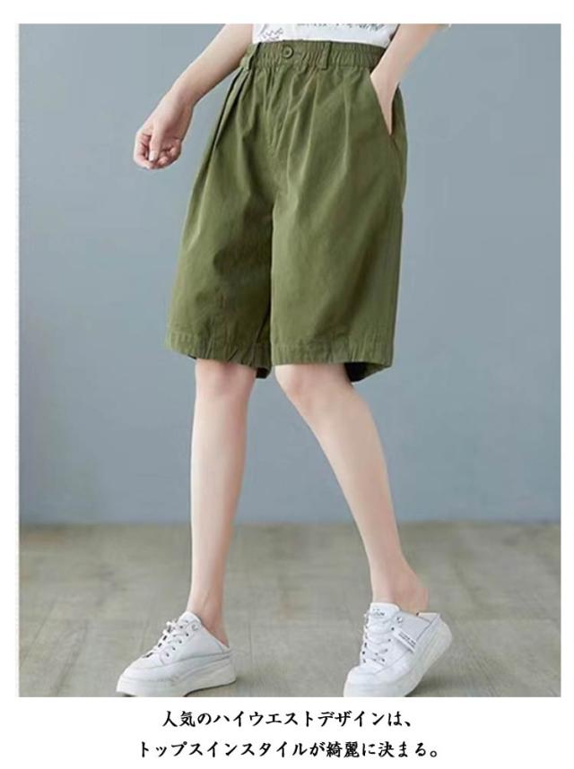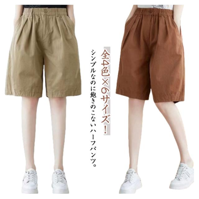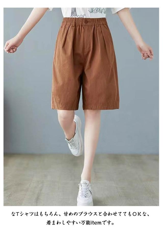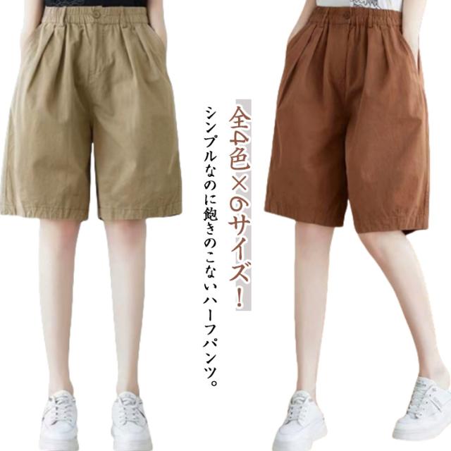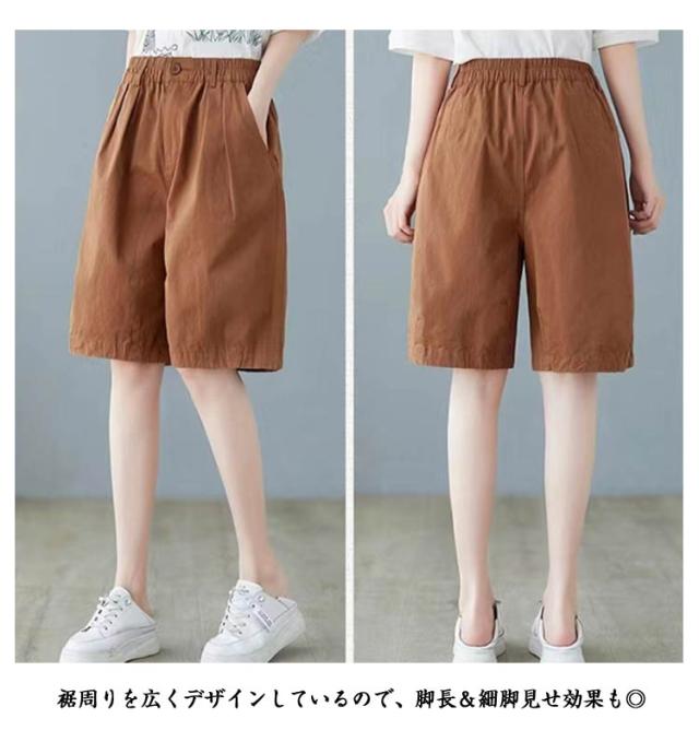レディース 膝丈 ワイドシルエット 全4色×6サイズ ハーフパンツ 全4色×6サイズ ショートパンツ ワイドパンツ 5分丈パンツ 短パン シンプル 無地パンツ ゆったり 5分丈 普段着 部屋着 カジュアルパン カジュアルパンツ 五分丈 ボトムス 大きサイズ ウエストゴム 春夏