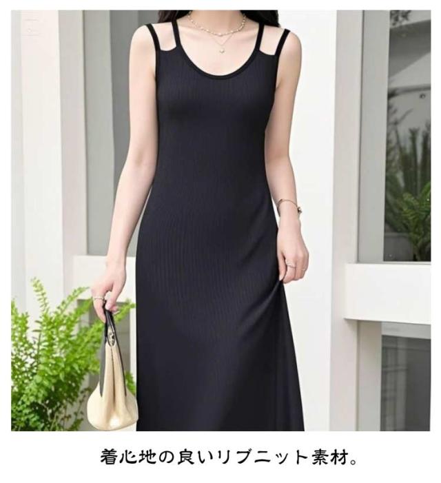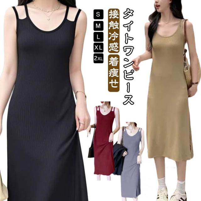 無地 ストレート 接触冷感 きれいめ タイトワンピース ノースリーブ シンプル ワンピース キャミソールワンピース リブニット 膝下丈 細身 サマーニット 上品 ミディアム レディース スリット タイト 着痩せ ニットワンピース おしゃれ 夏 サマーセーター 春 夏服