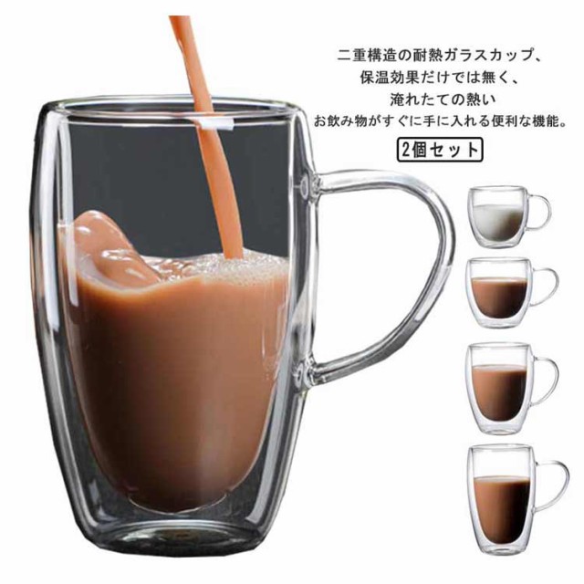 コーヒーカップ 耐熱ガラス コーヒーカップ ダブルウォールグラス お茶カップ マグカップ 結露しない 持ち手付き ボデガカップ ティーカップ 2個セット!ガラスカップ お茶カップ タンブラー グラス 保冷 保温 耐熱 クリア 2層構造