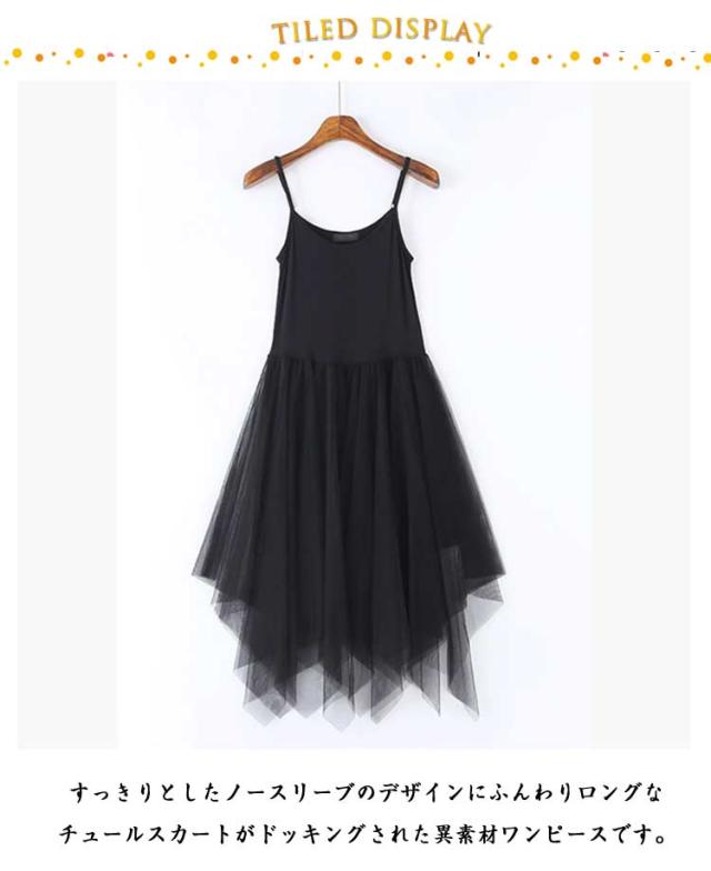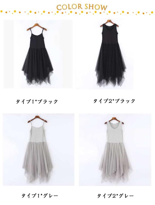 タンクトップワンピース 夏 レース レディース インナーワンピース ノースリーブ 無地 チュールスカート タンクトップ ロングワンピース 膝下丈 シンプル カジュアル ロング丈 チュールドッキング チュールドッキングワンピース ヘムライン裾