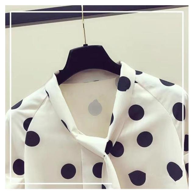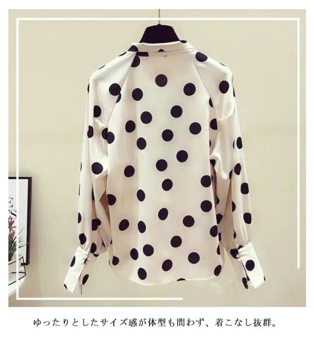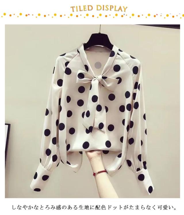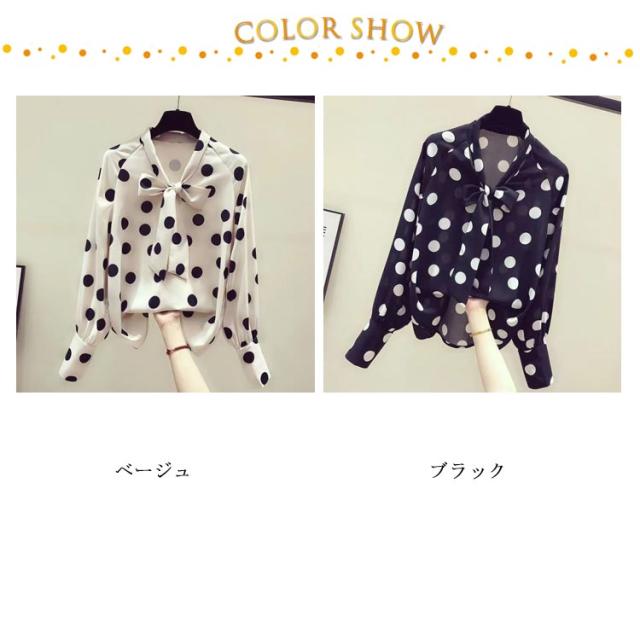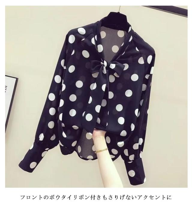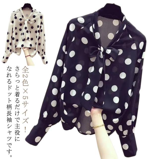 水玉柄 ボウタイリボン付き シャツ レディース 長袖シャツ トップス ボウタイリボン付き ドット柄 シフォン 可愛い シャツブラウス 春 ゆったり おしゃれ ブラウス 薄手 無地 シンプル カジュアル フォーマル オフィス 長袖 とろみシャツ リボン 大人 かわいい 春夏