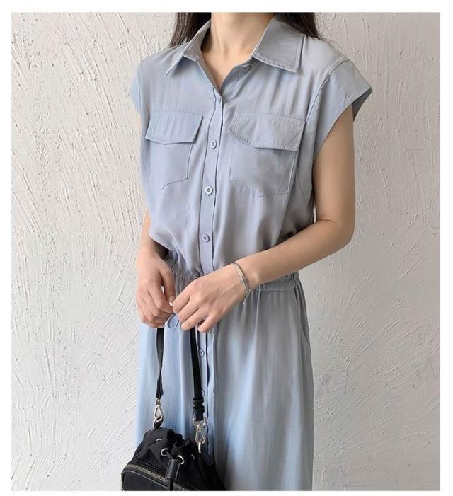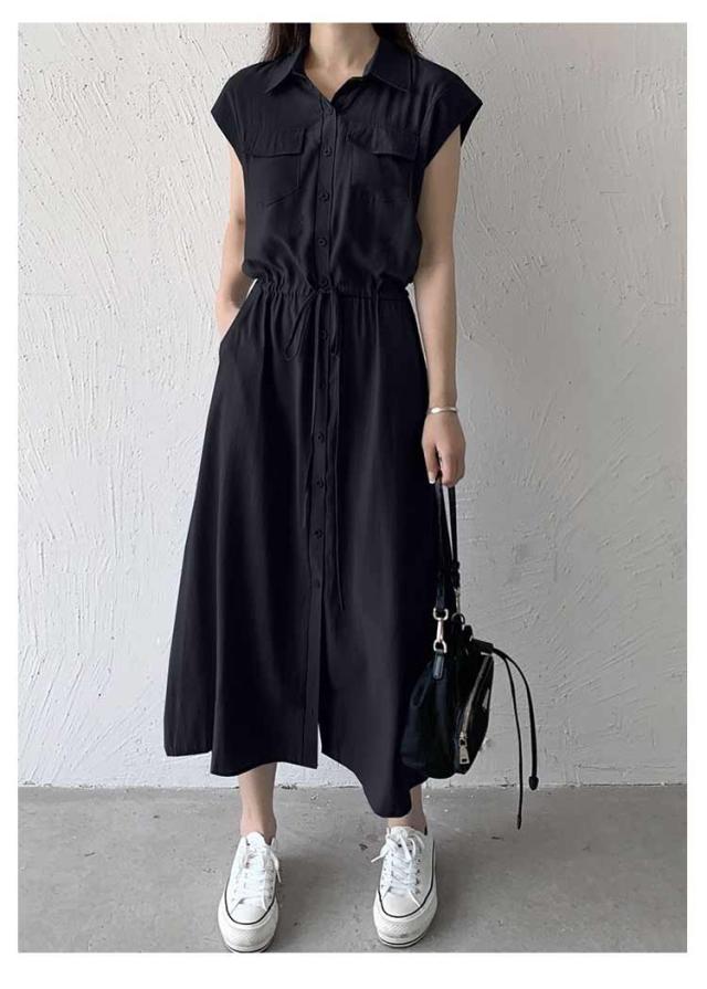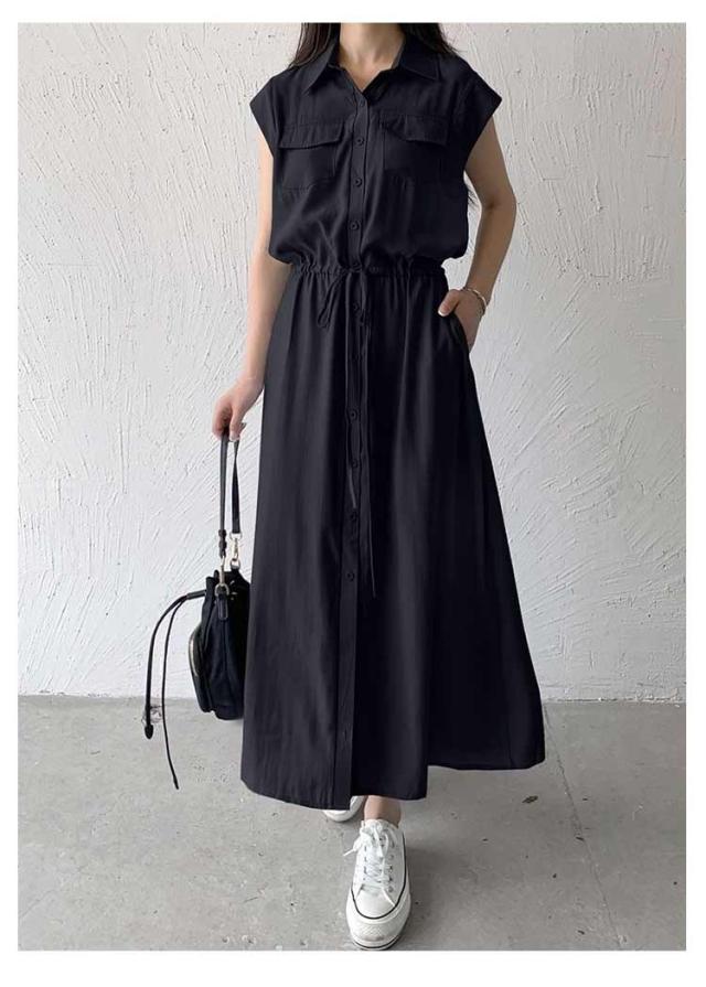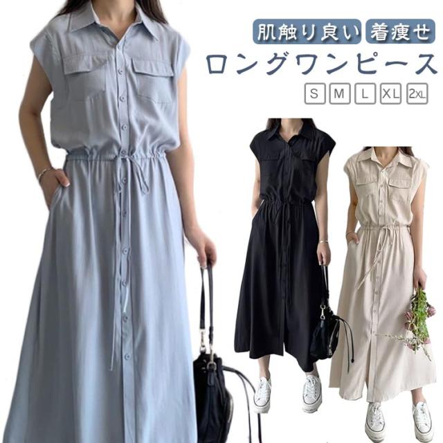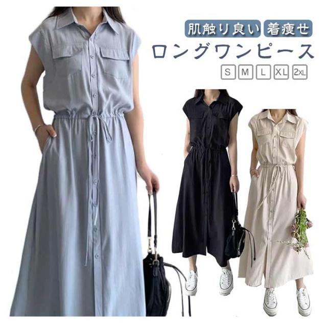 ワンピース シャツワンピース レディース シャツ ワンピース ロングワンピース 膝下 ミモレスカート 春 春 カジュアル 大きいサイズ ロング 長袖 きれいめ ノースリーブ ブラウス ポケット 夏 ワンピ シンプル カジュアル 体型カバー 着痩せ ロング丈 無地 肌触り良い