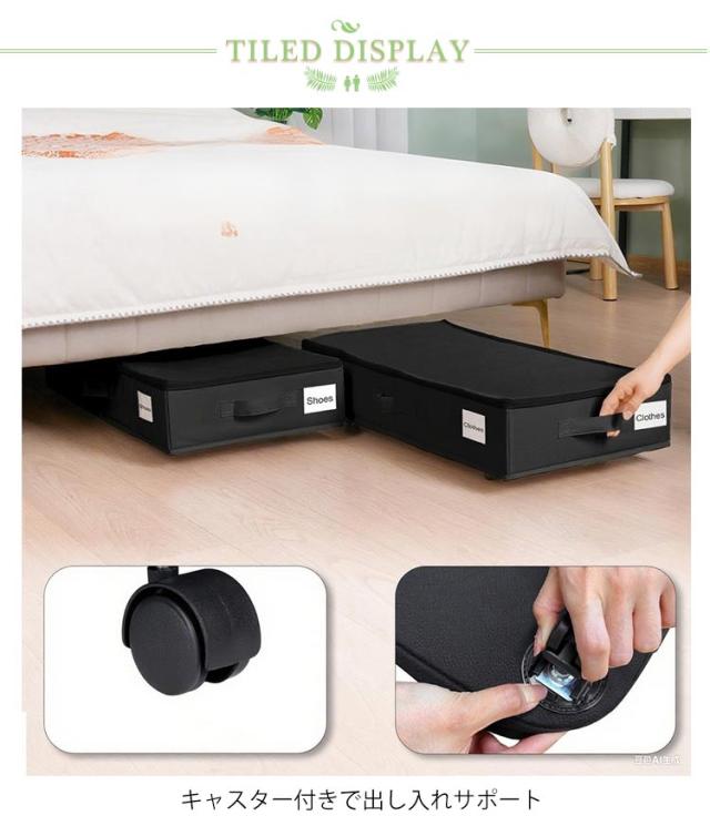 蓋付き ファスナー キャスター付き ベッド下収納ケース 布団収納 ソファ下 薄型 ベッド下収納箱 衣装ケース 浅型
