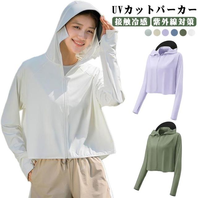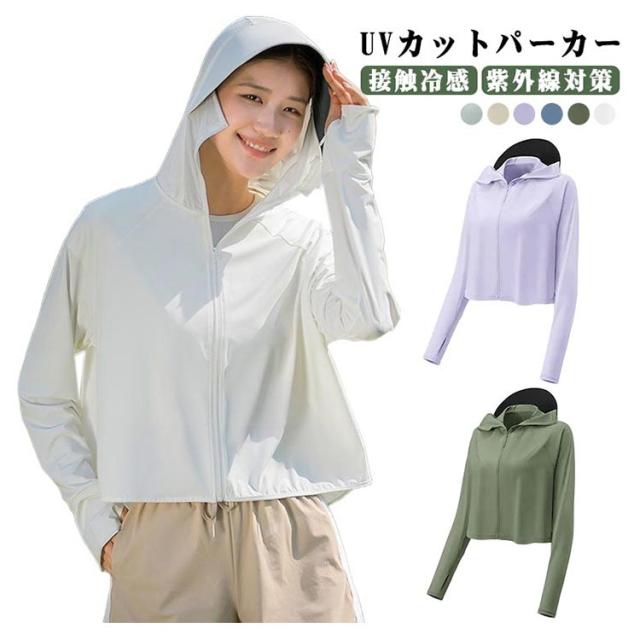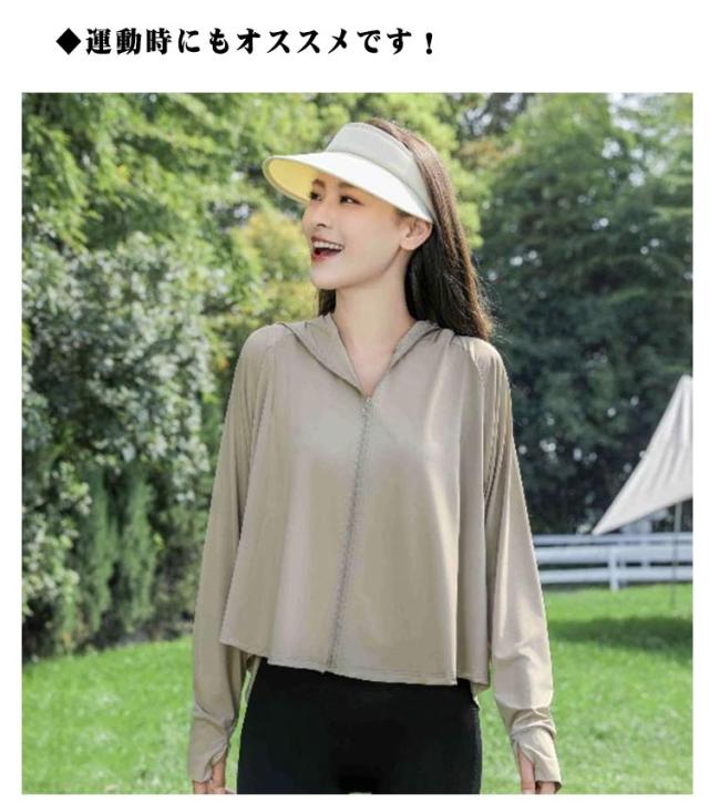 つば 夏 服 パーカー レディース 冷感素材 接触冷感 長袖 uvカットパーカー 日焼け防止 アイスシルク フード付き アウター UVカット サムホール パーカー UPF50+ ショート 通気性 吸汗速乾 羽織り 涼しい ウェア トップス 紫外線対策