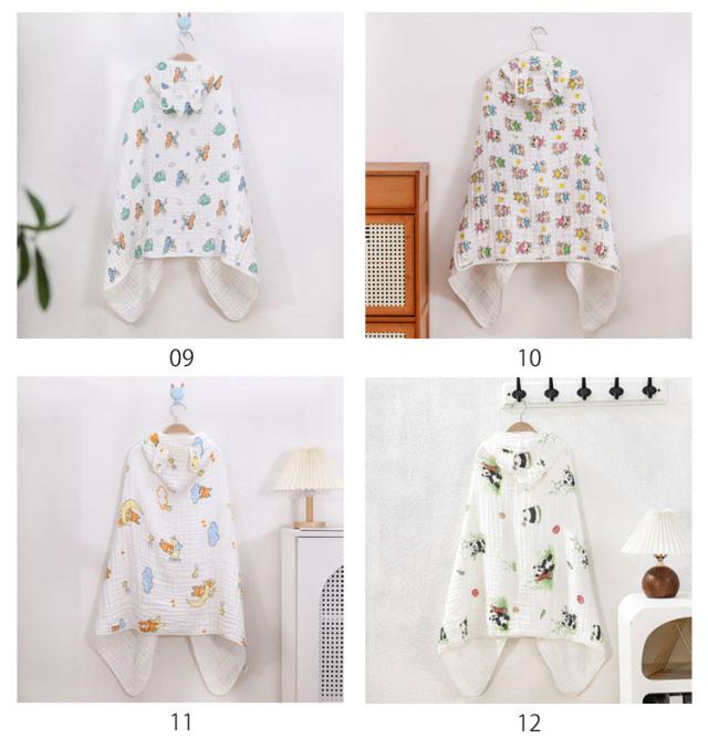 ポンチョ 6重ガーゼ フード付き ベビーバスローブ ラップタオル バスタオル ベビー 湯上りタオル バスポンチョ 巻きタオル プールタオル 綿 コットン 男の子 女の子 保育園 幼稚園