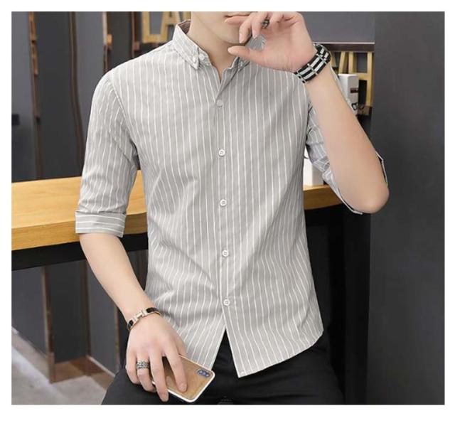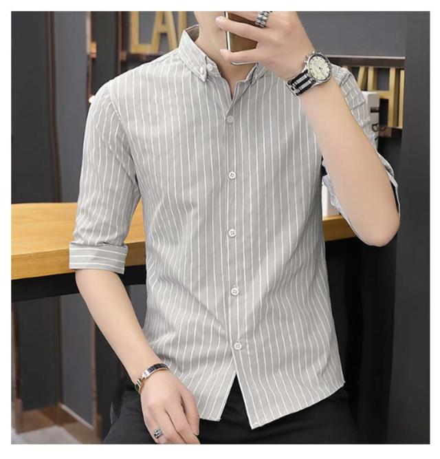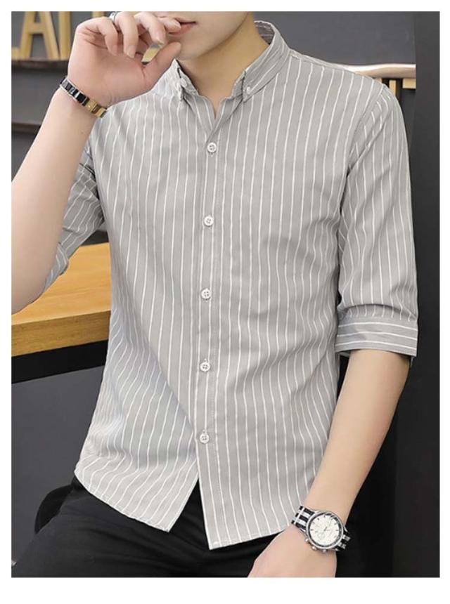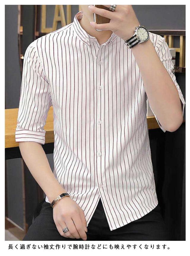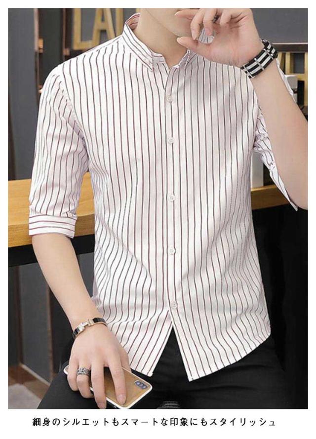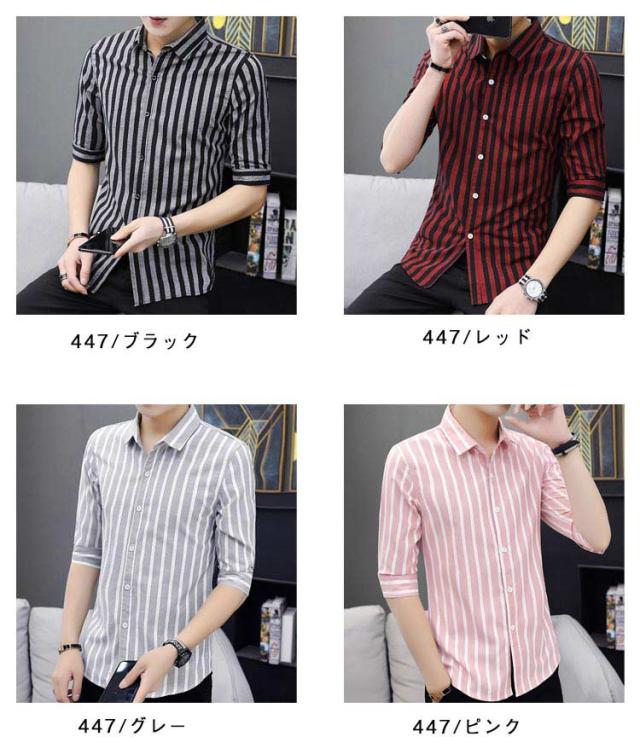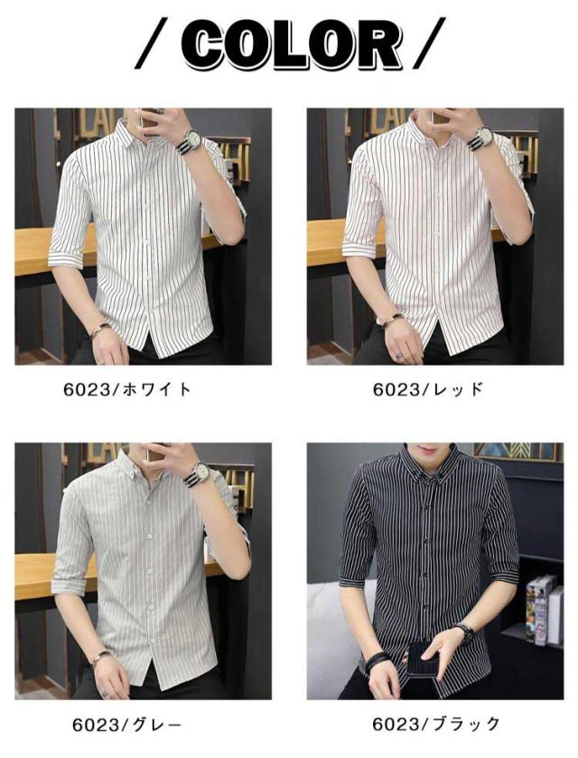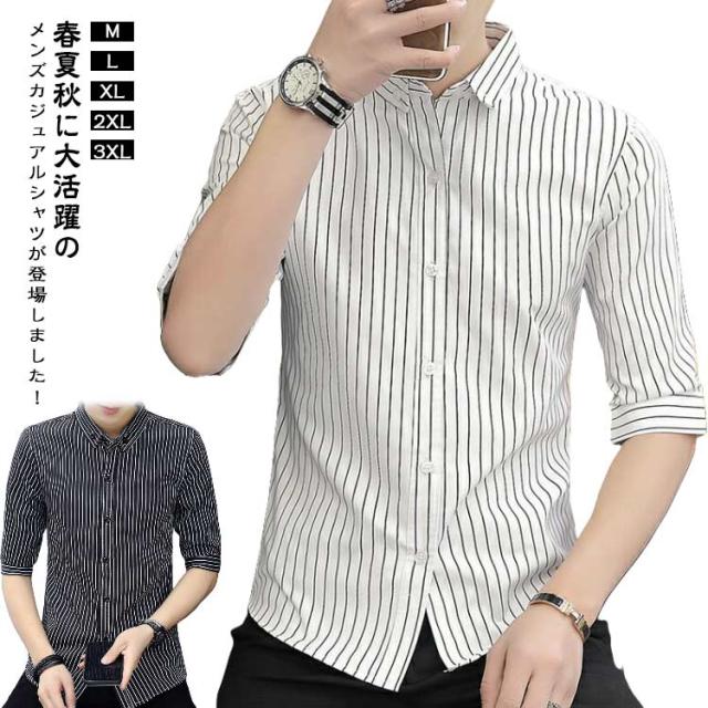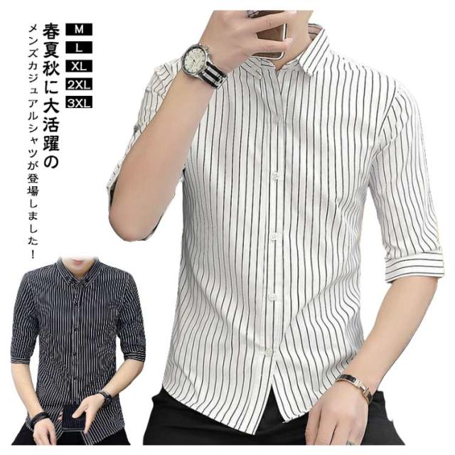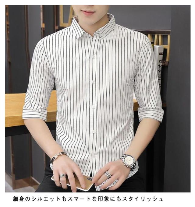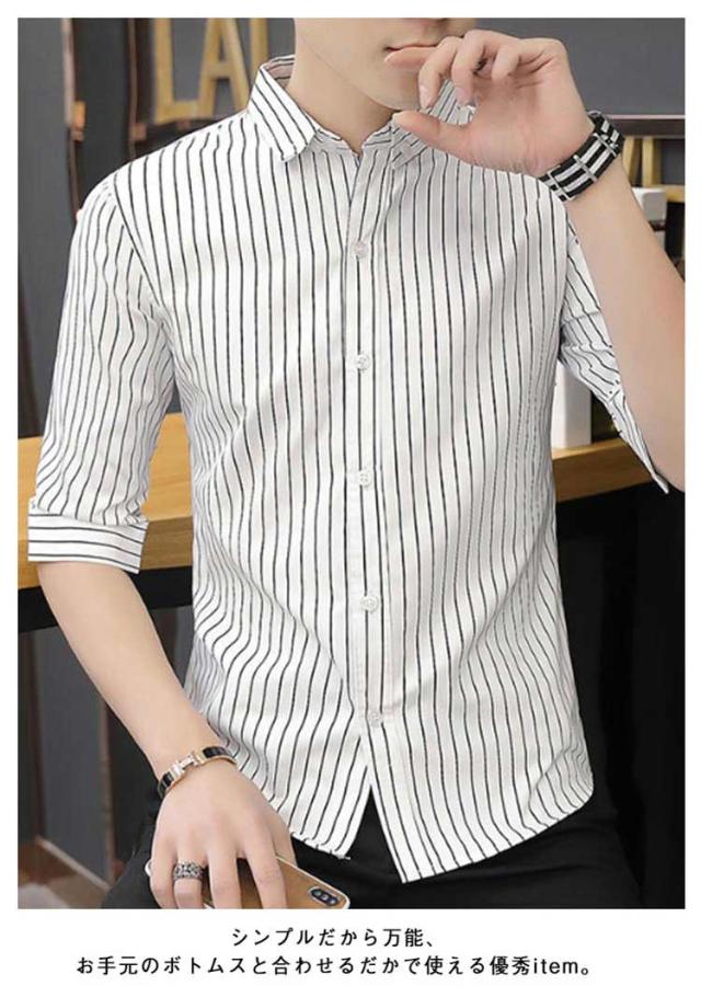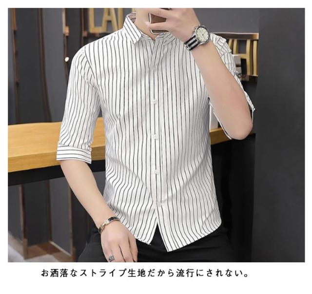 紳士服 カジュアルシャツ 5分袖 トップス メンズ カジュアルシャツ カジュアル 春夏 秋 キレイめ 薄手 ボタンダウン 細身 おしゃれ ビジネス ストライプ柄 シャツ トップス メンズシャツ 通勤 ビジネス 大人 男性