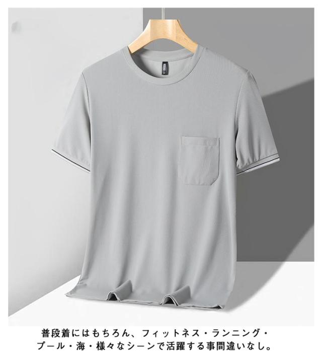 ゆったり メンズ 半袖tシャツ 夏 半袖 ラウンドネック おしゃれ 涼しい 冷感tシャツ 夏服 紳士服 アイスシルクTシャツ 無地 メンズ半袖 ストレッチ 大きいサイズ カジュアル トップス 通気性 運動着 部屋着