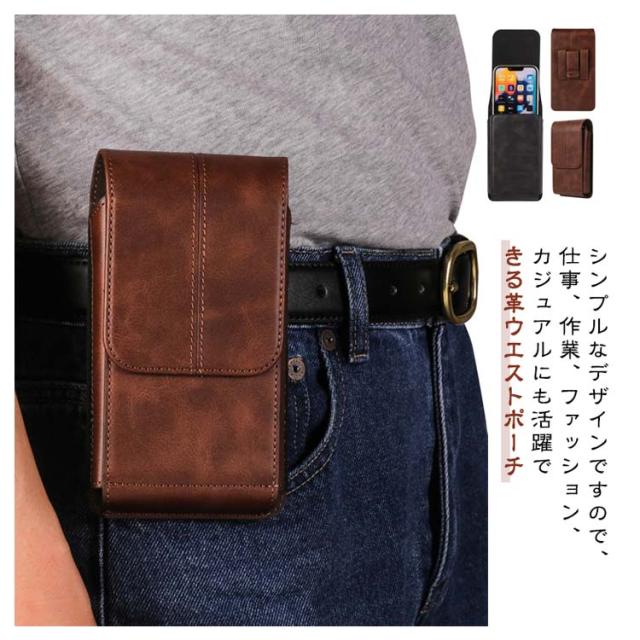 スマホポーチ 縦型 スマホポーチ スマホケース 高品質 レザー ベルトポーチ メンズ ヒップバッグ ウエストポーチ かっこいい キズ防止 作業用 仕事用 紳士用バッグ 紛失防止 革 落下防止 ウエストバッグ ウエストバッグ