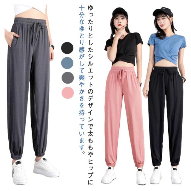 レディース ポケット付き 動きやすい スウェットパンツ 大きいサイズ 2枚セット 冷感パンツ ジャージパンツ ヨガパンツ 薄手 ボトムス 夏 ヨガ ジョガーパンツ 吸汗 速乾 ジム用 スポーツ ダンスウェア ひんやり