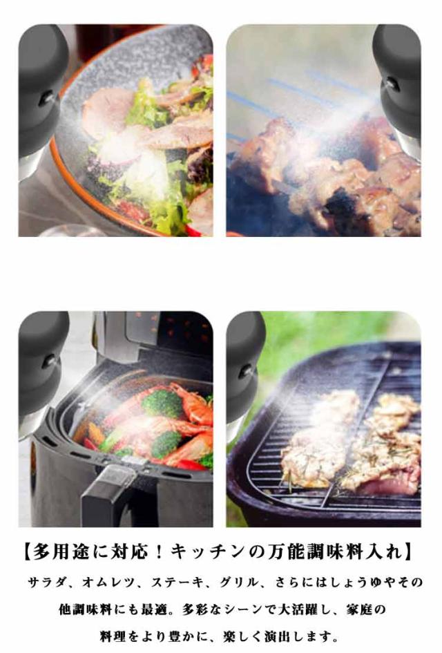 | 【均一なミスト噴射で正確なオイルコントロール】 ワンプッシュで細かい霧状ミストを実現し、オイルの量を均一にコントロール。料理の味を左右する調味料や油を、無駄なく正確にスプレーできます。 【漏れ防止・液だれしない安心設計】 独自の漏れ防止設計により、液だれやこぼれを徹底的に防止。大口径のノズルが、ストレスフリーな使用感を実現し、キッチンを清潔に保ちます。 【耐熱・耐衝撃ガラスボトル採用】 高品質の耐熱ガラスを使用し、熱に強く衝撃にも耐えられる堅牢な設計。透明なボトルだから、オイルの残量も一目で確認でき、安心してお使いいただけます。 【オイルの使い切り設計で経済的&ヘルシー】 吸引ストロー付きのデザインで、ボトル内のオイルを最後までムダなく使い切ることが可能。少量の使用でも充分な効果を発揮し、ダイエットやヘルシー調理をサポートします。 【多用途に対応!キッチンの万能調味料入れ】 サラダ、オムレツ、ステーキ、グリル、さらにはしょうゆやその他調味料にも最適。多彩なシーンで大活躍し、家庭の料理をより豊かに、楽しく演出します。 | |
