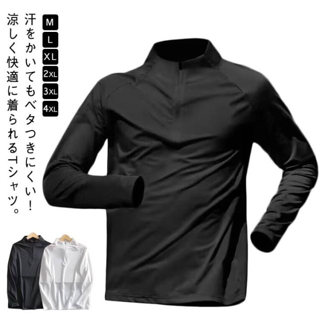 ゴルフウェア 春夏用 長袖Tシャツ メンズ アウトドア 作業着 伸縮 ドライ 長袖Tシャツ 吸汗速乾 ハーフジップカットソー ストレッチ Tシャツ 冷感 長袖 キャンプ 釣り 海 海水浴 海外旅行 フィットネスウェア トレーニングウェア