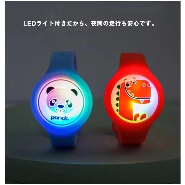 | 虫が嫌う天然の植物成分だけを採用した虫除けリングです。 虫が嫌がるレモングラスやラベンダー、茶の木、レモンユーカリ、ペパーミント、よもぎなど天然成分を使用。 化学薬品などを使用していないため、お子さんにも使いやすい。 かわいい動物がデザインされていて、アクセサリー感覚でつけられます。 手首や足首につけるだけで、どこでも簡単に虫除けができます。 ストラップは、軽量で肌にやさしいソフトなTPU素材です。 LEDライト付きだから、夜間の走行も安心です。 | |