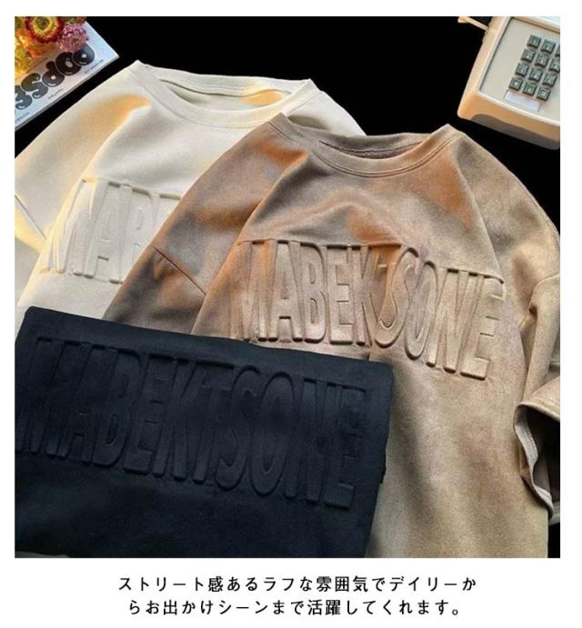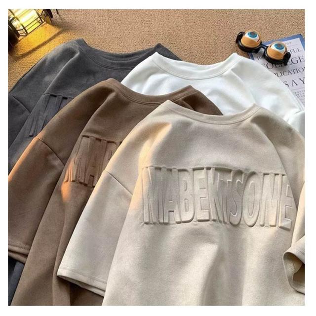 メンズ 半袖 Tシャツ エンボス加工 オーバーサイズ Tシャツ 大人 ロゴ カットソー クルーネック トップス プルオーバー 半袖Tシャツ ゆったり シルエット 大きい 大きめ メンズファッション 型押しエンボス 30代 40代 50代 春