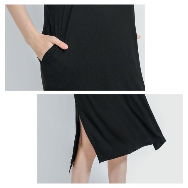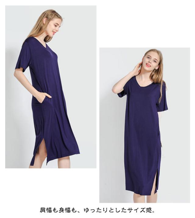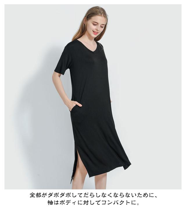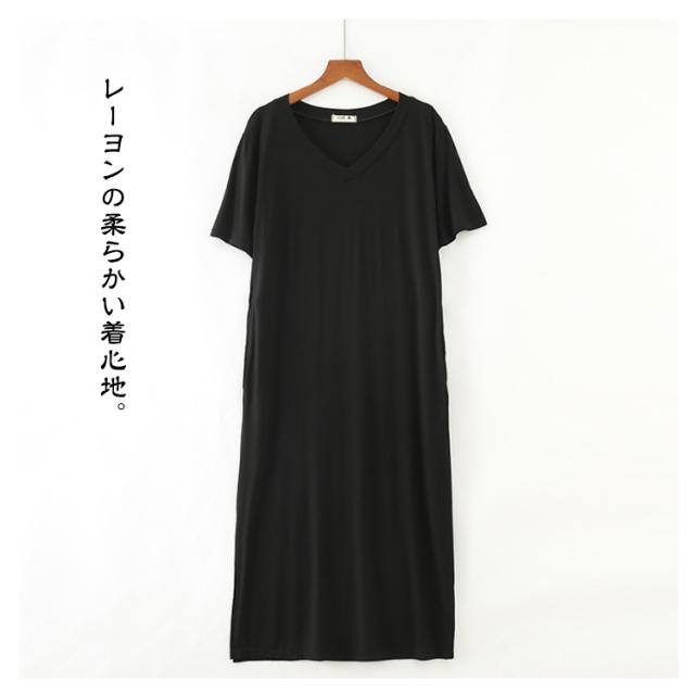 Tワンピ スリット とろみ さらっと Tシャツ ルームウェア 部屋着 涼感 vネック レディース ひざ下 ワンピース 冷感 半袖 上品 春 夏 ストレッチ ゆったり レーヨン Tワンピ 全8色 外出 春夏 ミディ丈 膝丈 ギフト プレゼント L