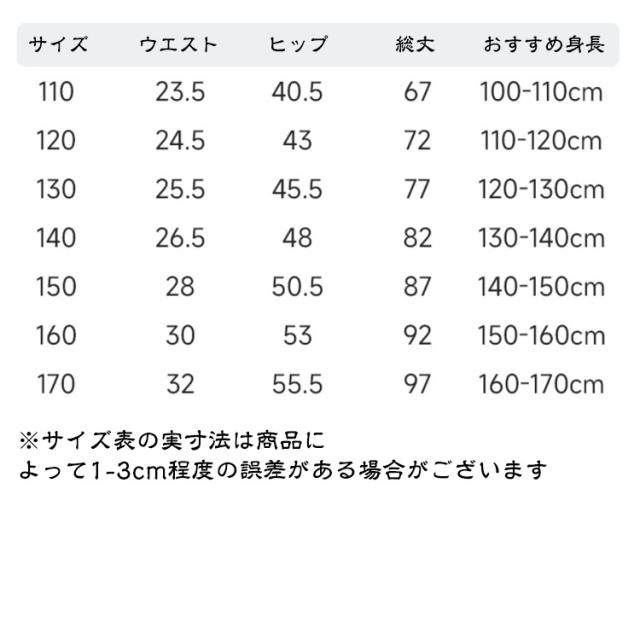 | サイズ | 110 120 130 140 150 160 170 |