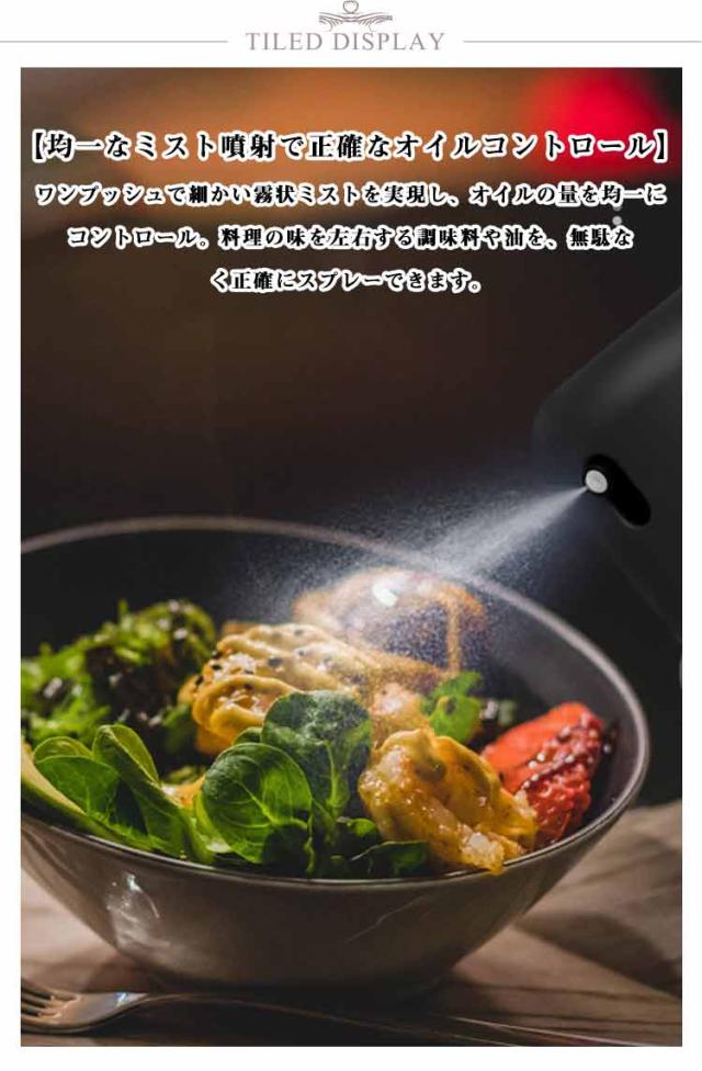 | 【均一なミスト噴射で正確なオイルコントロール】 ワンプッシュで細かい霧状ミストを実現し、オイルの量を均一にコントロール。料理の味を左右する調味料や油を、無駄なく正確にスプレーできます。 【漏れ防止・液だれしない安心設計】 独自の漏れ防止設計により、液だれやこぼれを徹底的に防止。大口径のノズルが、ストレスフリーな使用感を実現し、キッチンを清潔に保ちます。 【耐熱・耐衝撃ガラスボトル採用】 高品質の耐熱ガラスを使用し、熱に強く衝撃にも耐えられる堅牢な設計。透明なボトルだから、オイルの残量も一目で確認でき、安心してお使いいただけます。 【オイルの使い切り設計で経済的&ヘルシー】 吸引ストロー付きのデザインで、ボトル内のオイルを最後までムダなく使い切ることが可能。少量の使用でも充分な効果を発揮し、ダイエットやヘルシー調理をサポートします。 【多用途に対応!キッチンの万能調味料入れ】 サラダ、オムレツ、ステーキ、グリル、さらにはしょうゆやその他調味料にも最適。多彩なシーンで大活躍し、家庭の料理をより豊かに、楽しく演出します。 | |
