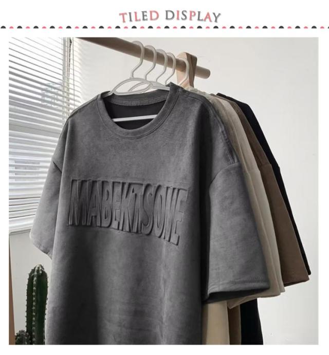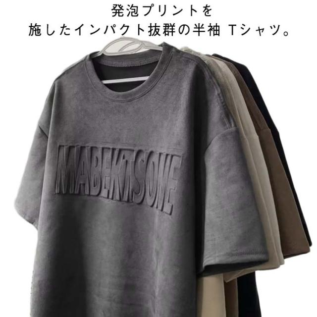 Tシャツ 半袖Tシャツ オーバーサイズ 大きめ Tシャツ エンボス加工 型押しエンボス ロゴ カットソー クルーネック トップス メンズ エンボス加工 ゆったり シルエット 大きい プルオーバー メンズファッション 大人 30代 40代 50代 春