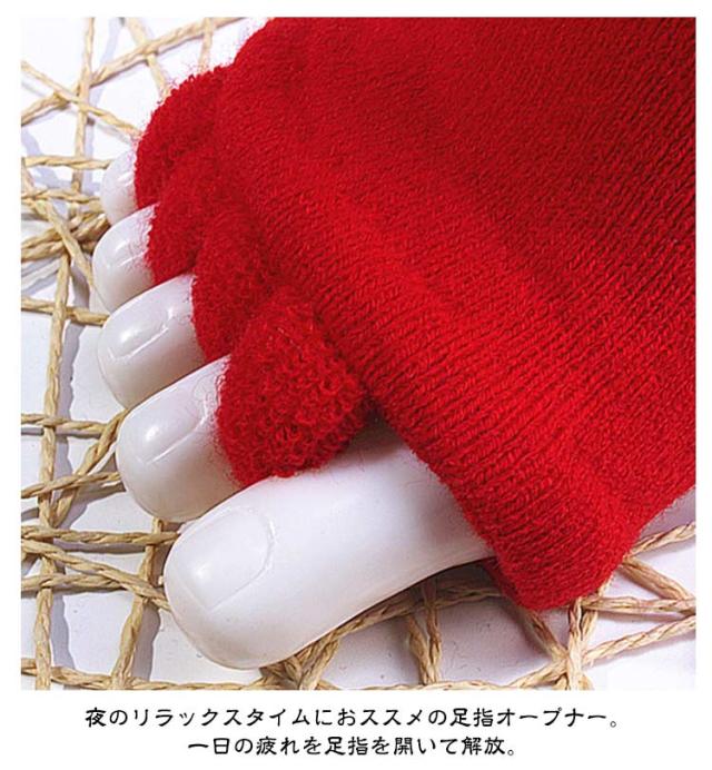 | 足指を広げるソックス 2足セット 靴の中で縮こまっていた足指をぱっと広げて、すっきり心地よく。 保温性の高い繊維を使用しているから心地よく温まる。 夜のリラックスタイムにおススメの足指オープナー。 一日の疲れを足指を開いて解放。 露趾デザインで、足指を自由に動かすことができ、さらに快適な使用感です。 足指外反を防止する効果があり、正しい姿勢と歩行をサポート。 | |