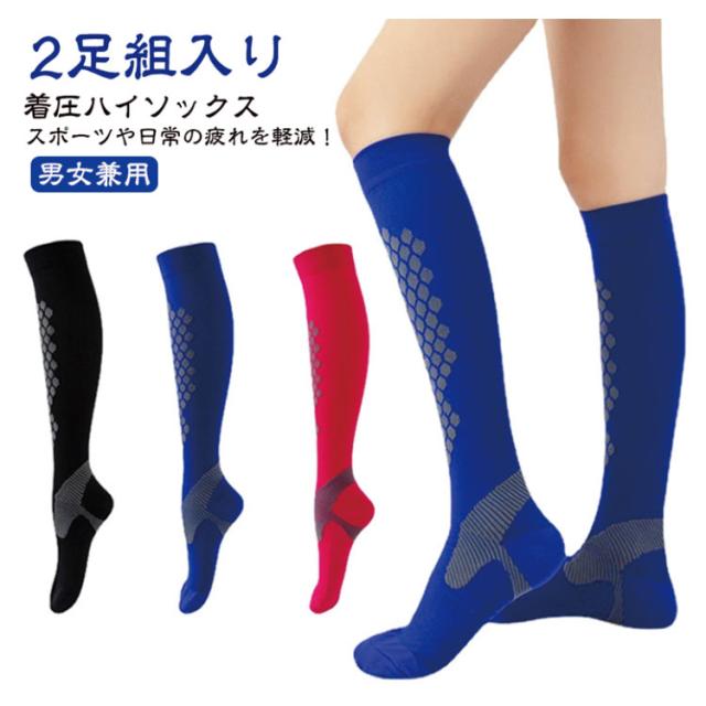【2足組入り】着圧ハイソックス 靴下 着圧 ハイソックス 【2足組入り】着圧ハイソックス 着圧 2足 着圧ソックス メンズ 送料無料 コンプレッションソックス メンズ コンプレッション スポーツソックス レディース スポーツ 運動 スポーツソックス 足