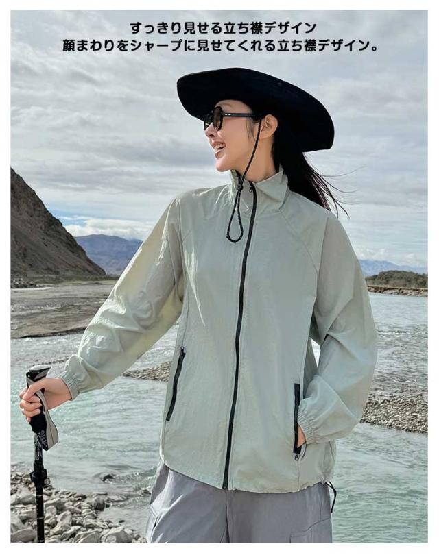 ジャケット 軽量 UVカットパーカー レディース スポーツ 春夏 薄手 通気性 アウトドア ハイキングウェア 防風パーカー 旅行用 ライトアウター 紫外線カット 立ち襟 長袖 UPF50+ 体型カバー カジュアル おしゃれ