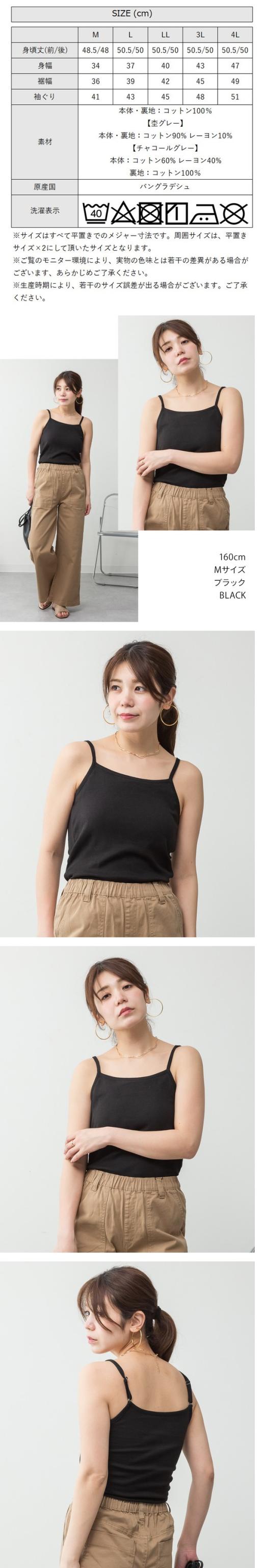 【月初SALE】冬新作 大きいサイズ レディース カップ付き キャミソール コットンフライス トップス インナー キャミ 下着 コットン100% 綿100% ブラカップ カップ取り外し可能 重ね着 下着