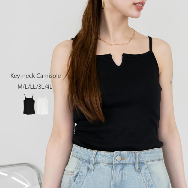 冬新作 【メール便可】キーネックキャミソール インナー 綿100% 無地 レイヤード 重ね着 キャミ レディース 大きいサイズ