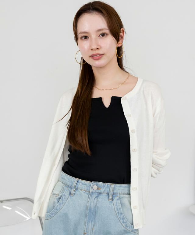 一枚で着ていただくのはもちろん、シアーシャツやブラウスなどのトップスやワンピースの中に着用していただくことも◎