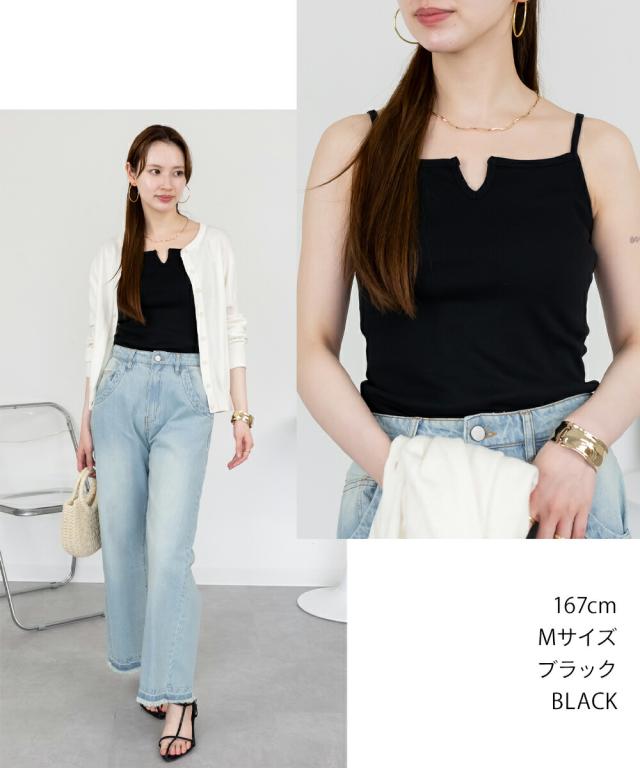 1枚での着用はもちろん、レイヤードスタイルにも使いやすく、カジュアルからきれいめまで幅広いシーンで活躍する万能キャミソールです。